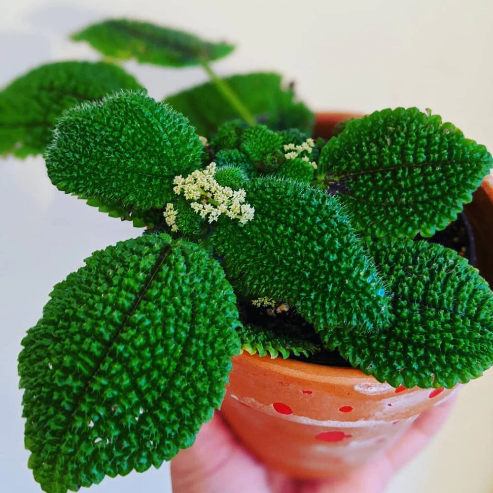 Pilea Friendship Plants have stunning leaves, covered in a quilted pattern, and a fuzzy texture. Pileas prefer to have low or indirect lighting, but needs to have it for lots of time throughout the day. Although rare, this wonderful houseplant will sometimes grow little clusters of blush pink flowers in the summer. During the wintertime, the soil should be relatively dry, but keep it moist during the summer! This plant is also very particular about temperature, needed temperatures to stay consistently between 65F° to 75F° Fahrenheit(18-23C° Celsius). Although this humidity lover can be picky, it brings a lovely new color and texture to any home!